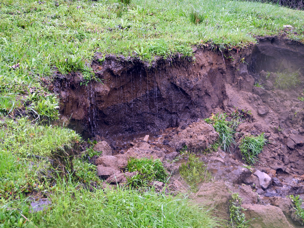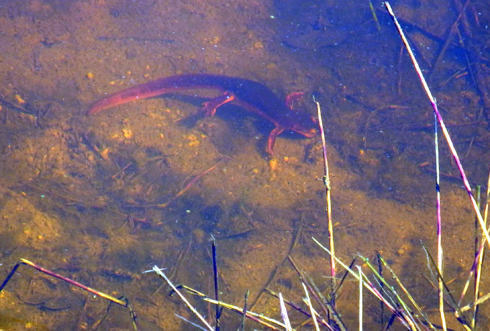 Creek crosses the road. Here we saw larger fiddlenecks, in greater