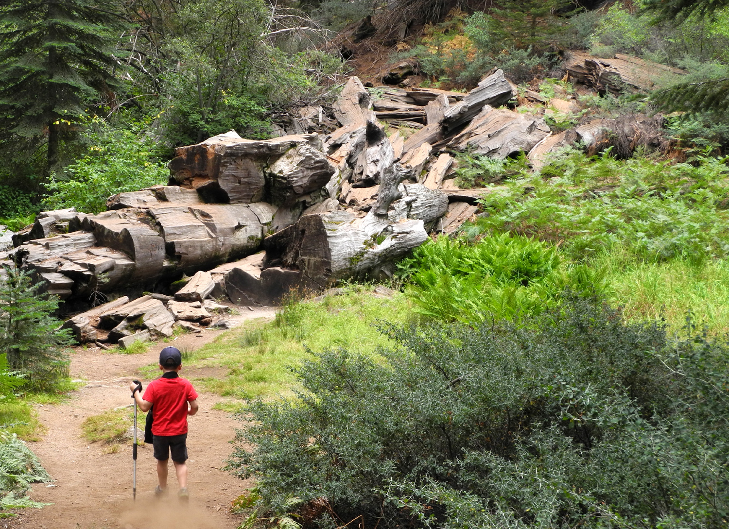 trail goes past a huge sequoia that fell in 1933 , and arrives at
