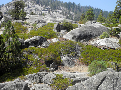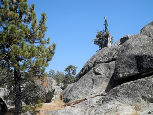 huge boulders, areas of soil support juniper and Jeffrey pine, and