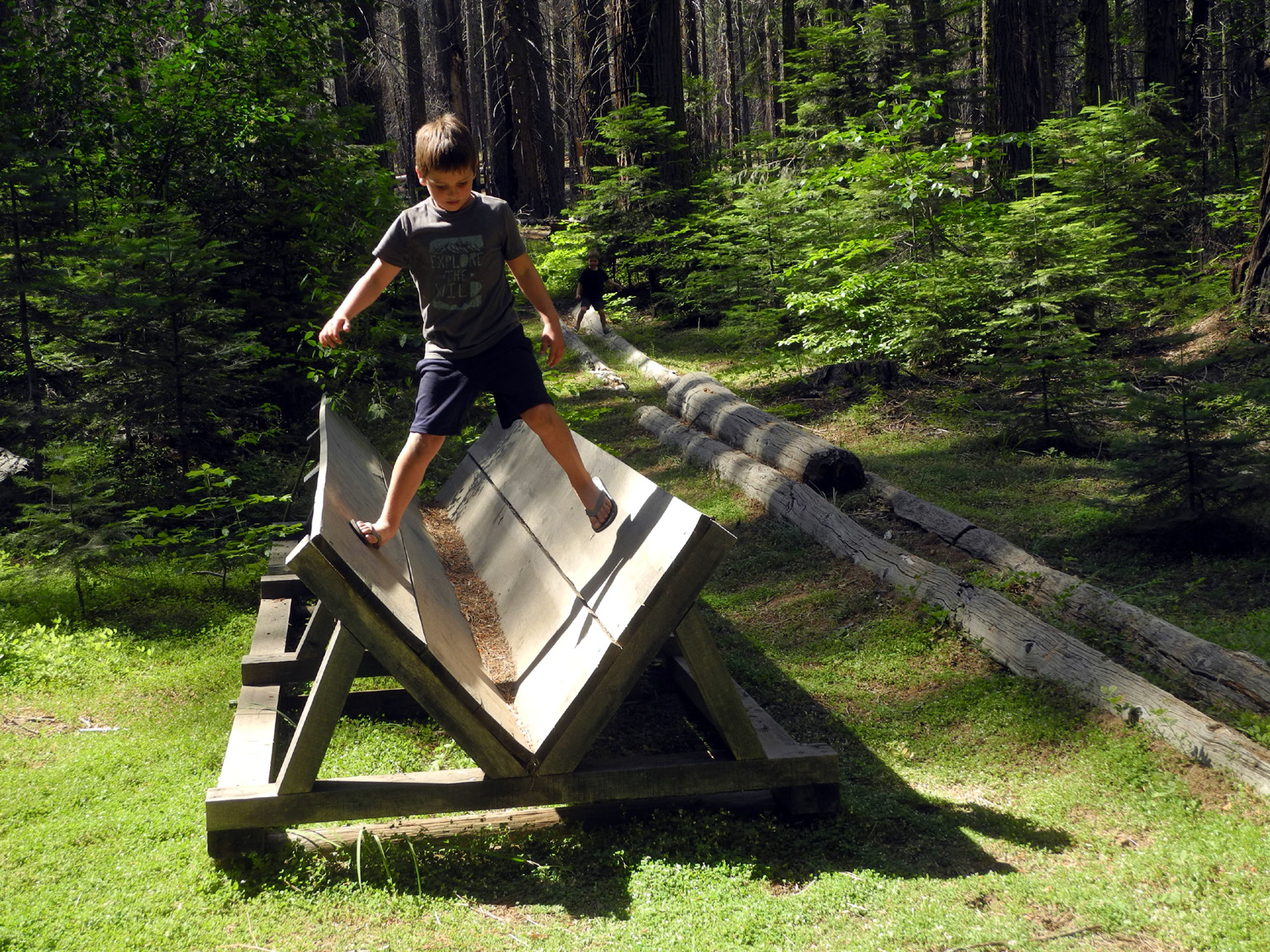 Colton on the Chimney Tree Trail's log bridge |