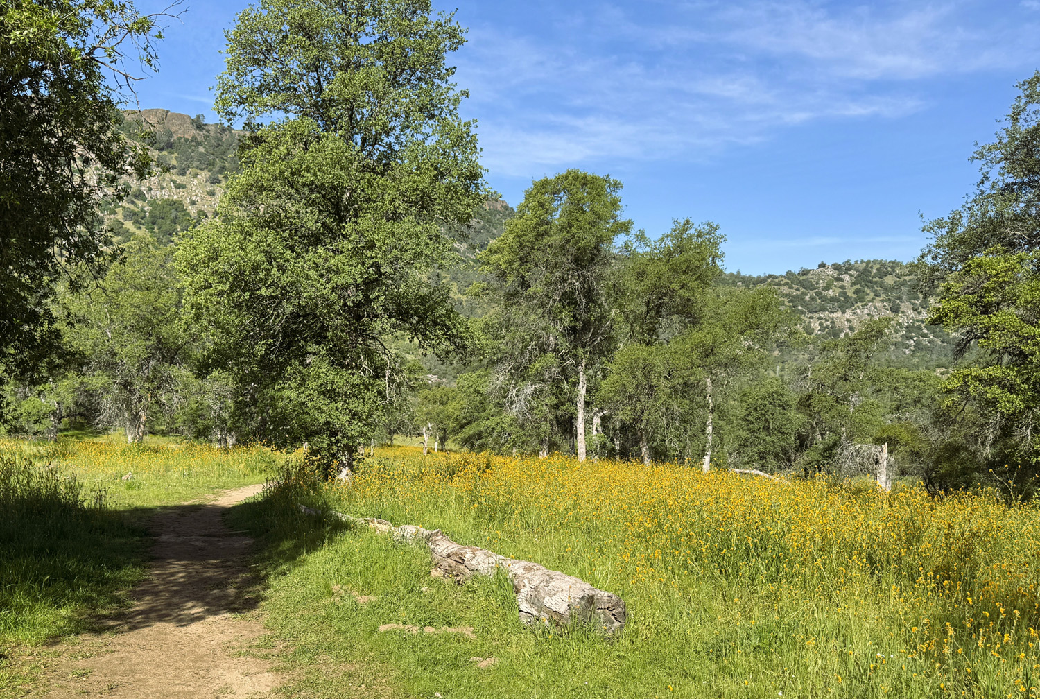 blue oaks, buckeye, redbud, buck brush and many wildflower species.