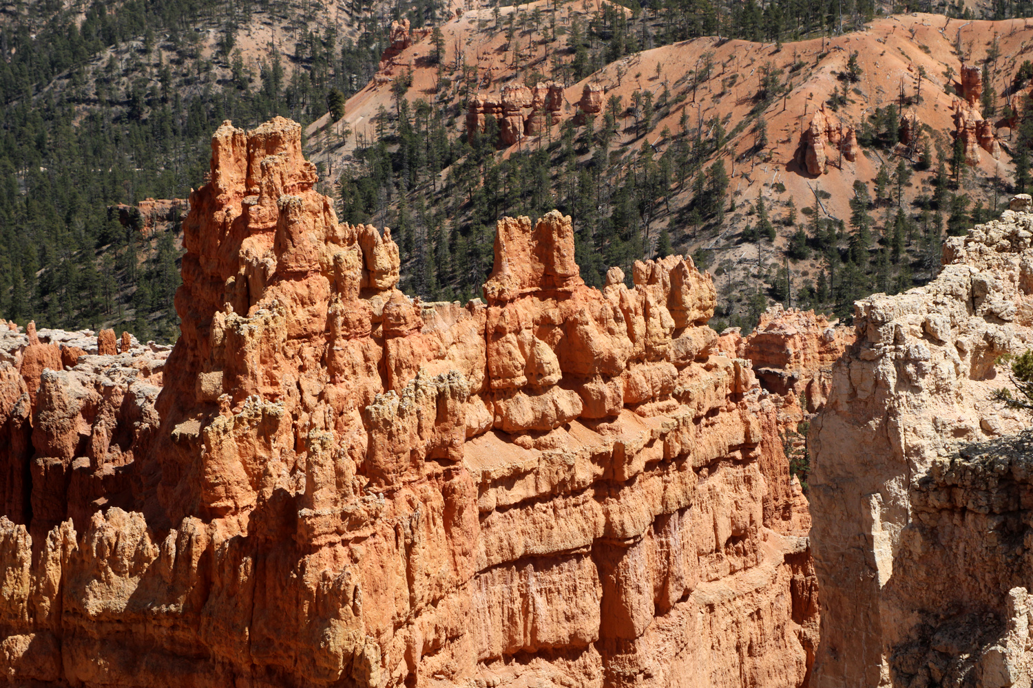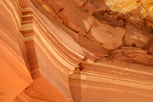 Light tan sandstone contrasts with the red