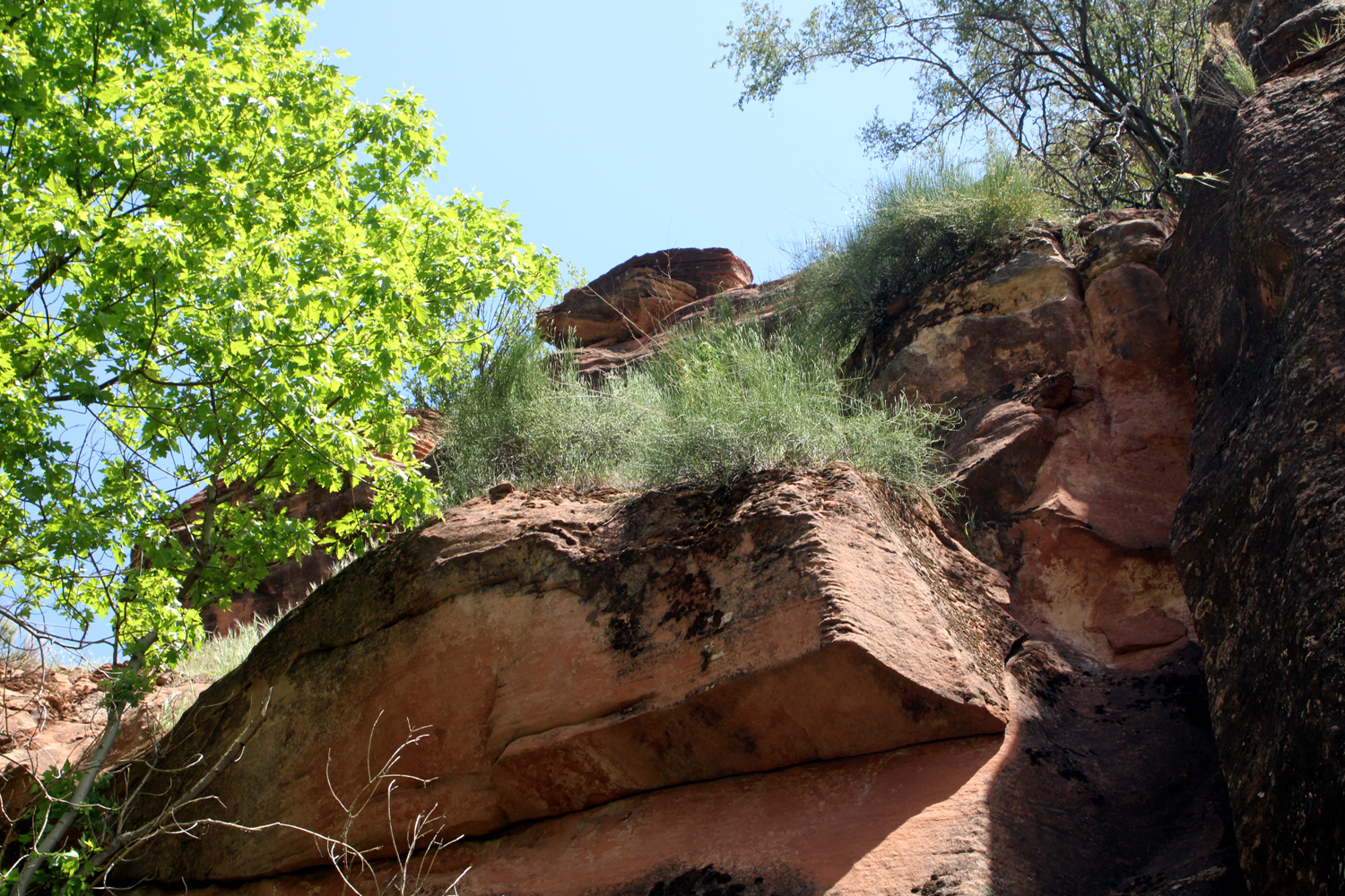 plants have gained a foothold on the canyon walls. There are numerous