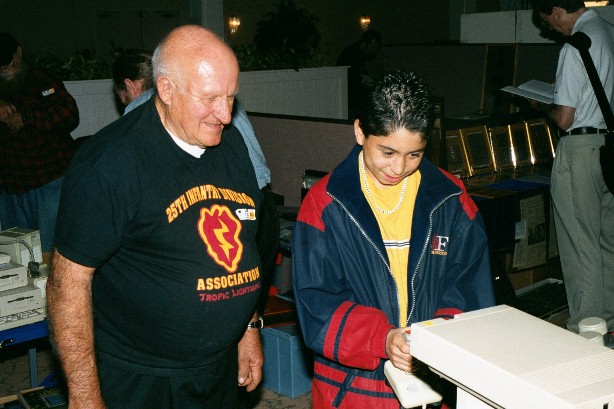 The most widely known events of the last few years in the Commodore world have been the Vintage Computer Festival in Silicon Valley, the Lansing (MI) Expo and the Chicago Expo. The 2001 festival was cancelled in the aftermath of 911, but VCF 5.0 was held on October 26-27, 2002 at Moffett Field Federal Airbase, Mountain View, California. Attendance was about 300 total for both days. The event featured exhibits, demos, products for sale and early computers large and small on display. Robert Bernardo, who has attended and reported on many of these events, was there and captured the action and the faces on film. |