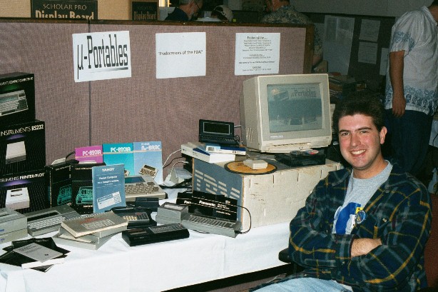 Cameron Kaiser next to his exhibit of micro-computers | Larry Anderson's exhibit table with an interested user | Larry Anderson's vending table (wife, Diane Hare, in the blue jacket) |