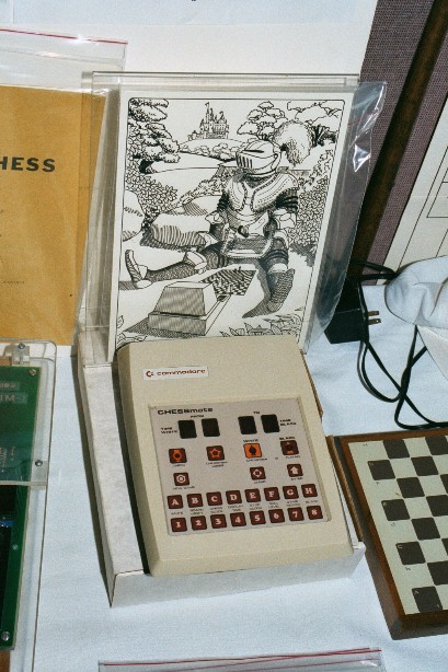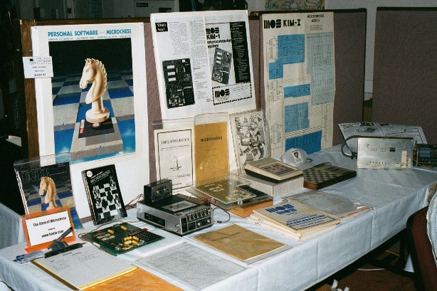 The FCUG table (Ed Hart, right) | A close-up of the Commodore ChessMate at Peter Jenning's exhibit table | A wider view of Peter Jenning's exhibit table |