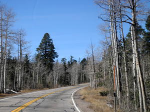 Leafless aspens along Highway 14 | Navajo Lake | Aspens in their golden fall attire | |