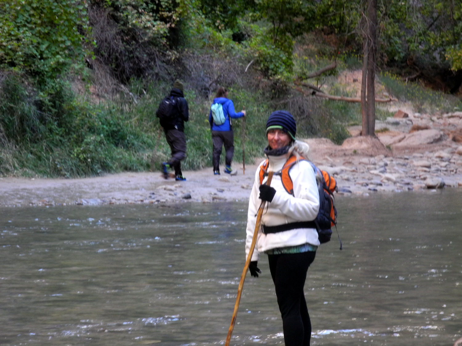 Teri steps off on her great adventure in the Narrows | Nowhere to walk but in the river | ||