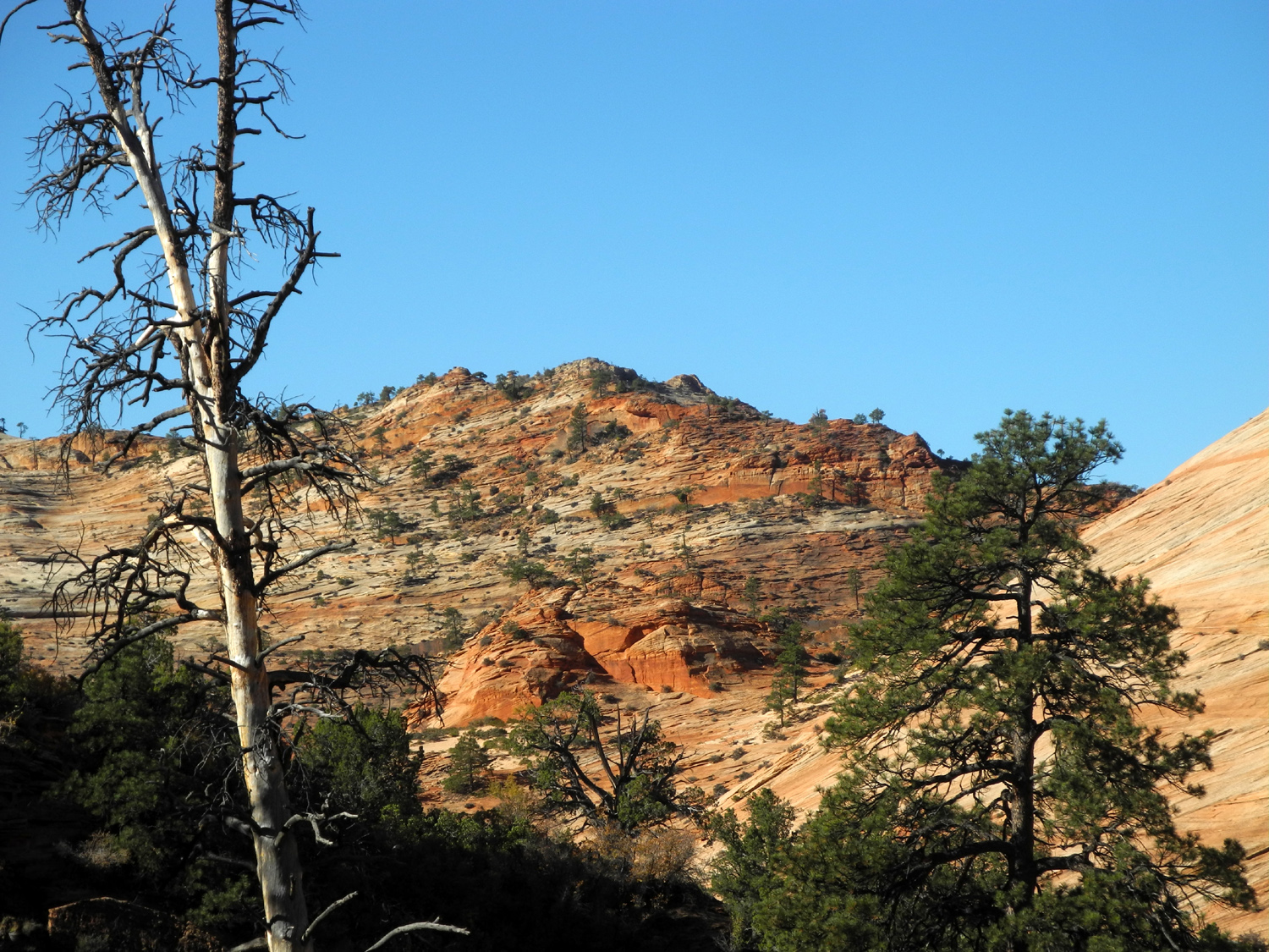 On Sunday, our third and last full day in Zion, Teri and I went our separate ways. She had wanted to hike the Virgin River Narrows, a challenging route which requires wading in the river most of the way. I did not feel that I was steady or strong enough to handle something of that short, and planned to hike some of the trails along the road we had taken into Zion Canyon. |