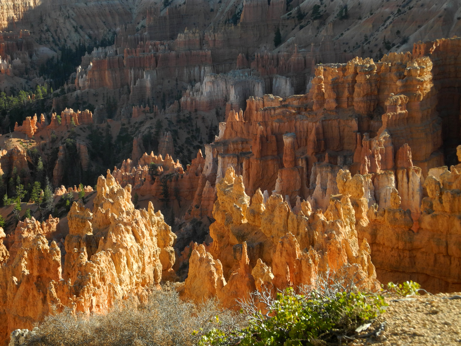 Sandy hills set off by a dark green forest | Final view at the end of the Navajo Loop | Hard to survive when you grow on a rock | |
